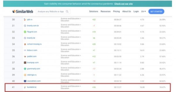 Sonymen, «Kúndelik» AAJ elektrondyq jýrnaldar men kúndelikter júıesi (https://kundelik.kz) Qazaqstan mektepterine 2020 jyldyń sáýir-mamyr aılarynda táýligine shamamen ortasha 1 mln adamnyń «sabaqqa barǵanyn» tirkedi, bul 2019 jylǵy sáýir men mamyr aılarynyń sáıkes kezeńimen salystyrǵanda 2 ese kóp degen sóz. Bul kórsetkishtiń tarıhı shyńy 6 sáýirde tirkelip, bir táýlikte júıeni paıdalanǵandar sany 2 mln boldy. Oqý jylynyń sońǵy toqsanynyń barlyq kezeńinde ortasha alǵanda, saıt paraqshalary men fýnksıonalyn táýlik ishinde qaraý 21 mıllıondy (6 sáýirde tarıhı shyńy táýligine – 49 mln qaraý, kúnine 3,2 mln adam kirip) qurady.