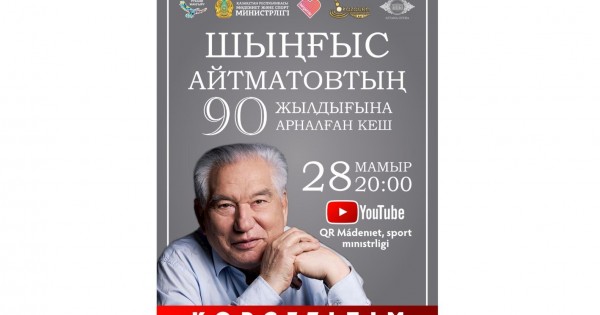 Jazýshy, qoǵam jáne memleket qaıratkeri Shyńǵys Aıtmatovtyń búgin 90 jyldyǵyna arnalǵan keshtiń kórsetilimi ótedi. Bul týraly mınıstrliktiń baspasóz qyzmeti habarlady.