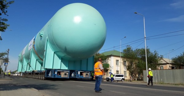 Bul júkter Ońtústik Koreıadan "AtyraýО́zen" portyna jetkizilgen edi. Endi ony Qarabatan aýylynyń mańyndaǵy gazohımııalyq zaýytynyń qurylys alańyna deıin tasymaldaıdy.