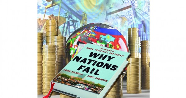 Birinshiden, tilge tıek bolyp otyrǵan bes júz betten asyp jyǵylatyn aýqymdy týyndy – ekonomıkalyq ósim teorııasy boıynsha 15 jyl boıy túbegeıli zertteýler júrgizgen tereń daryn ıeleri Daron Adjemoglý men Afrıka jáne Latyn Amerıka elderiniń ekonomıkalaryna tamyrly taldaý jasaǵan onyń áriptesi Djeıms Robınsonnyń, sondaı-aq ózge de suńǵyla ǵalymdardyń 300-ge tarta ǵylymı-zertteý jumystarynyń jan-jaqty saraptalyp, shegine jetkize sıntezdelgen syǵyndy sóli.