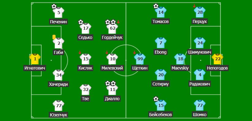 «Astana»: qaqpashy – Nepogodov; qorǵaýshylar – Persýh (Barsegıan), Shımýnovıch, Radakovıch, Shomko; jartylaı qorǵaýshylar – Maevskıı, Tomasov, Ebong, P.Sotırıý, Beısebekov; shabýylshy – Shetkın (D.Rotarıý).