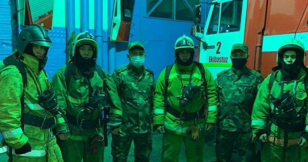 Janý núktesi oryn alǵan páterdiń esigi jabyq ekenin anyqtaldy. №2 bólimshe komandıri Bekov Janat pen órt sóndirýshi-qutqarýshy Muqajanov Naýryz arnaıy quraldyń kómegimen temir esikti ashyp, eki adamdy syrtqa shyǵaryp, jedel járdem brıgadasyna tabystaıdy.