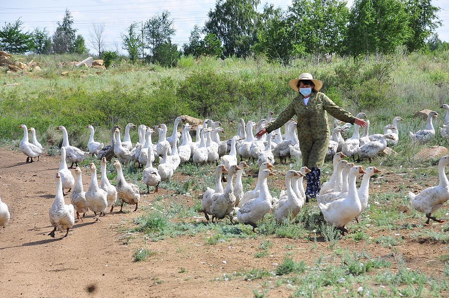 О́tken jyly qus fermasy 800 qaz satypty. Semiz ári taza et birden ótip ketse kerek. Baǵasyna kásipker de, satyp alýshylar da razy.