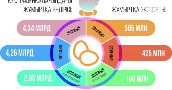 Qaýymdastyq basshysy Maksım Bojkonyń málimetinshe, 2018 jyly 560 mln jumyrtqa shetelge eksporttalǵan. Bul – jalpy jumyrtqa óndirisiniń 10 paıyzy. Byltyr eksport kólemi 425 mln jumyrtqany qurasa, osy jyldyń 8 aıynda 160 mln jumyrtqa syrtqa shyǵarylǵan. Iаǵnı, kórsetkish kemip keledi. Ásirese bıyl erekshe quldyraǵan. M.Bojko munyń sebebin jumyrtqa óndirisin sýbsıdııalaýdyń toqtatylýymen baılanystyrady.
