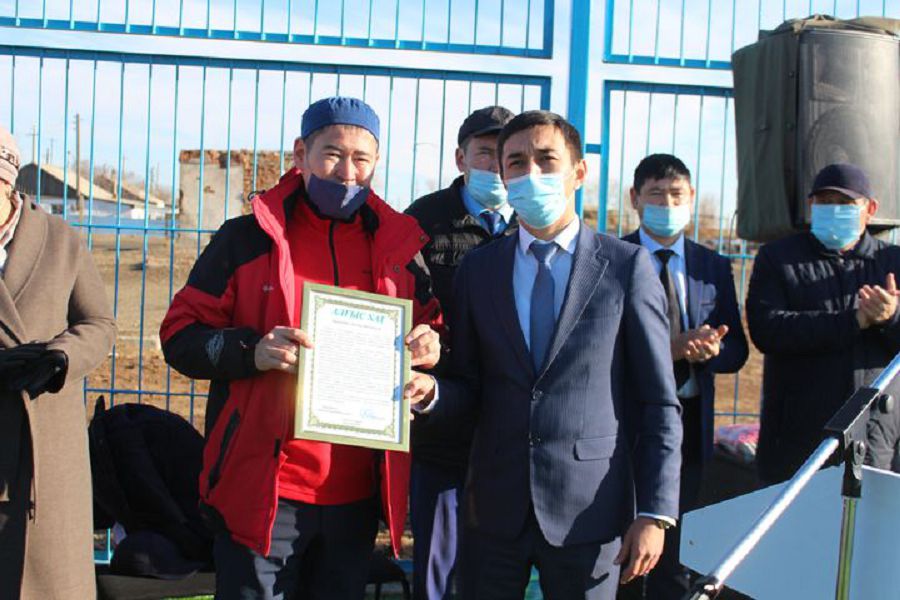 Sport alańynyń ashylý rásimine Amangeldi aýdany ákiminiń orynbasary Súndet Ǵanıev, aýdan ákimdigine qarasty birneshe bólim basshylary men aýyl turǵyndary qatysty. Saltanatty jıynda ákim orynbasary baıǵabyldyqtardy jańa sport nysanynynyń ashylýymen quttyqtap, fýtbol alańynyń salynýyna erekshe atsalysyp, jastardy uıymdastyra bilgen Baǵlan Erǵazın men Bolat Jumaǵalıevke aýdan ákiminiń Alǵys hatyn tapsyrdy.