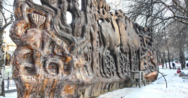«Kórip turǵandaryńyzdaı, mys qabyqtyń oń jáne sol jaq shetteri julynyp qalǵan. Kóp zııan keltirilgen. Mys qabatynyń shamamen úshten bir bóligi zaqymdalǵan. Modeldiń ózi temirbetonmen qurastyrylǵan», - dep túsindirdi avtor.
