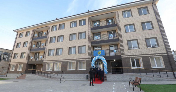 Onyń qurylysyna «Teńizshevroıl» JShS «Igilik» áleýmettik baǵdarlamasy arqyly qarjy bóldi. Tórt qabatty jataqhana bólmeleri kúndelikti turmysqa qajetti jabdyqtarmen qamtamasyz etilgen. Munda stýdenttermen birge jas otbasylar da tura alady. Ár qabatta 4 teledıdar men 12 avtomatty kir jýý mashınkasy bar.