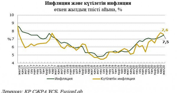 Jeltoqsan aıynyń qorytyndysy boıynsha halyqtyń ınflıasııalyq kútýleri birshama tómendedi. 2020 jyly jeltoqsanda ınflıasııalyq kútýlerdiń sandyq baǵasy bir jyl alǵa, ıaǵnı 7,6%-dy qurady (2020 jylǵy qarashada – 7,8%).
