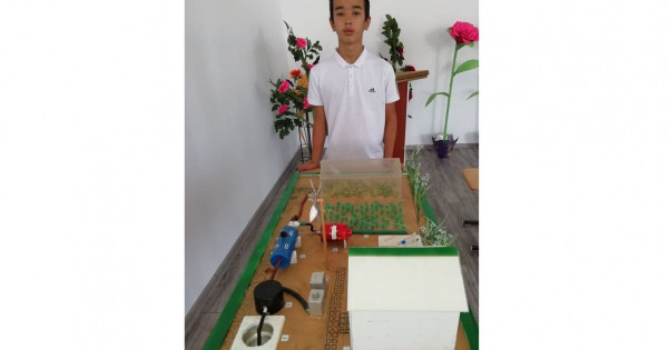 – Tamshylatyp sýarý – sýdy, sondaı-aq ósimdikterdi zııankesterden qorǵaıtyn agrohımııalyq tyńaıtqyshtardy tamyrǵa tikeleı ári birkelki jetkizý úshin qoldanylatyn óndiristik tásil. Qondyrǵy qaqpaqshalarynyń torymen qubyrlardyń, tútikterdiń kómegimen sý baıaý tamshylaıdy, – deıdi ónertapqysh oqýshy Qajymuqan Muqanov.