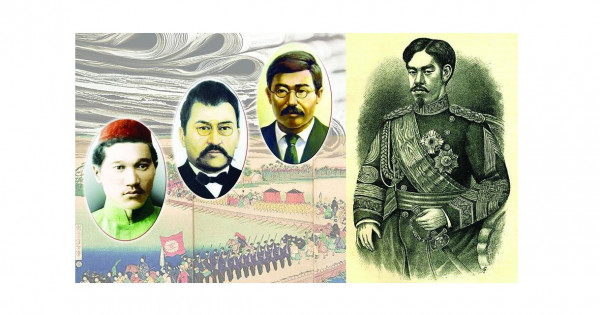 Japon taqyrybyndaǵy áleýmettik oı-tolǵamdar bastaýynda Á.Bókeıhan, M.Dýlatuly, H.Dosmuhameduly, Ǵ.Berdiuly (Berdıev), Muhamadǵalı bın Ǵabdrahman Orazbaıuly (Orazbaev) syndy tulǵalar turady.
