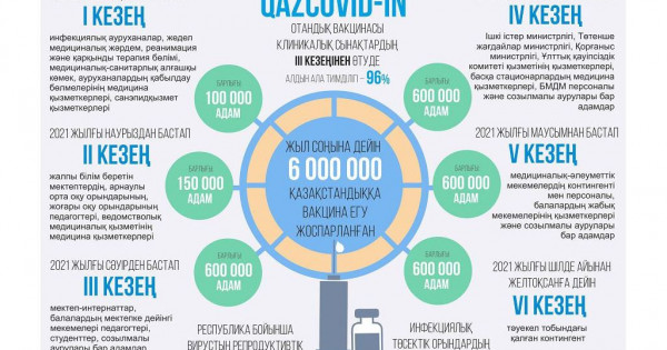 QazCovid-in otandyq vaksınasy klınıkalyq synaqtardyń III kezeńinen ótýde (aldyn ala tıimdiligi – 96%).