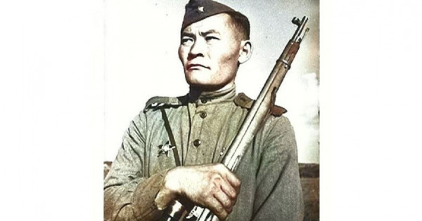 Oraıy kelgende aıta keteıik, surapyl jyldardaǵy maıdan gazetterinde mergenniń fotosýretteri de kóp jarııalandy. Solarǵa qarap-aq biz Ybyraıymnyń ataqty Qaztýǵan jyraý aıtqandaı, «budyraıǵan eki shekeli, muzdaı úlken kóbeli, býyrshynnyń buta shaınar azýy» deıtin naǵyz azamat erdiń ózi bolǵanyn ańǵaramyz.