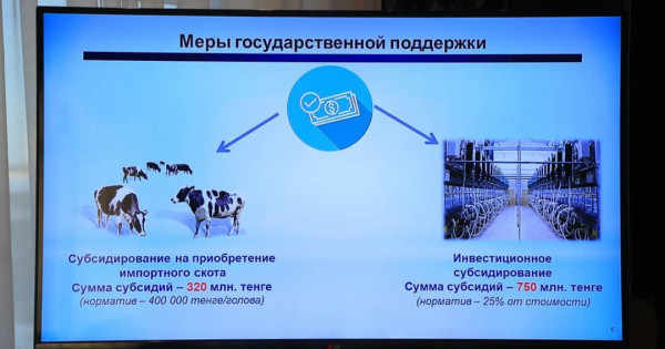 «Oblys mal sharýashylyǵyndaǵy barlyq baǵyttardy damytý úshin aıtarlyqtaı resýrstarǵa, ónimdi ótkizý boıynsha joǵary áleýetti múmkindikterge ıe. Buǵan qol jetkizý joldarynyń biri - sút óńdeý keshenderin qurý arqyly mal sharýashylyǵyn ónerkásiptik negizge kóshirý» - dedi oblys ákimi Arhımed Muhambetov.