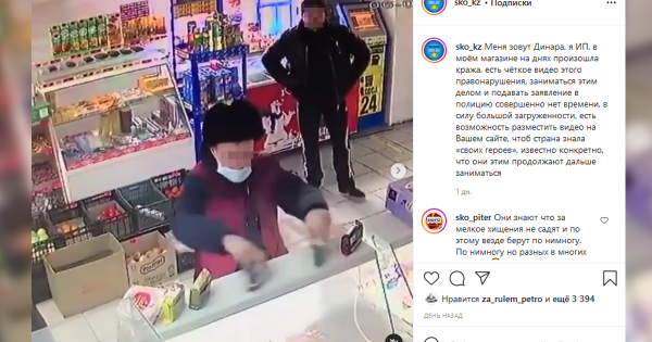 Jýyrda onyń kezekti ret dúkennen usaq taýar urlap turǵany beınekameraǵa túsip, ony dúken ıesi áleýmettik jelilerge shyǵarǵan.