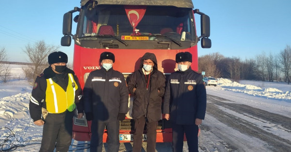 Al bul ýaqytta Túrkııa azamatyn polıseılerdiń ótinishi boıynsha oqıǵa ornyna kelgen TJ qyzmetkerleri qonaq úıge aparyp, jyly jerge túnetedi. Al tártip saqshylary túni boıy onyń júk kóligin qadaǵalap júredi.