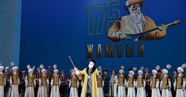 Saltanatty is-shara odan ári ultymyzdyń uly jyraýynyń 175 jyldyǵyna arnalǵan merekelik konsertke ulasty. Q.Qýanyshbaev atyndaǵy memlekettik akademııalyq qazaq mýzykalyq drama teatry, Nur-Sultan qalalyq Jastar teatry ujymy men «Astana Opera» memlekettik opera jáne balet teatry sımfonııalyq orkestriniń ártisteri kórermenderge «Jyr alyby – Jambyl» atty teatrlandyrylǵan qoıylym usyndy. Uly aqynnyń baǵa jetpes murasyn, ózindik ereksheligi men darynyn ashyp kórsetetin ádebı-mýzykalyq kompozısııada jyr dúldúliniń ataqty aıtystary men áıgili «Keń baıtaq Qazaqstanym», «Aqyndarǵa arnaý», «Kúláshqa», «Lenıngradtyq órenim!» jáne taǵy da basqa taǵylymdy týyndylary oryndaldy. Ásirese, dástúrli ánshi, Qazaqstannyń eńbek sińirgen qaıratkeri Aqan Ábdýáli men Jastar teatrynyń akteri Jandáýlet Bataı jan bitirip, sahnada jańasha ómir syılaǵan Jambyl men Qulmambettiń aıtysy kórermen qoshemetine bólenip, kópshilik kóńilinen oryn aldy. Jambyl rólinde kóringen akter, Qazaqstannyń eńbek sińirgen qaıratkeri Bekjan Turys oıyny, onyń «Lenıngradtyq órenim!» óleńin kemeline keltire jyrlaǵan júrek dirili jınalǵan jurtshylyqty beıjaı qaldyrmady.