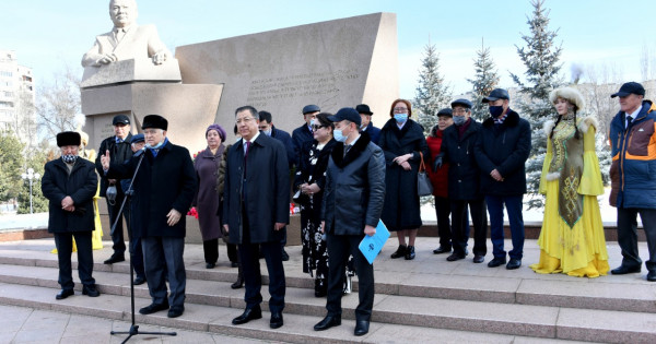 Alǵys aıtý merekesimen tuspa-tus kelgen aıtýly shara stýdentter saraıy aldyndaǵy Joldasbekov eskertkishine gúl shoqtaryn qoıyp, taǵzym etýmen bastaldy.