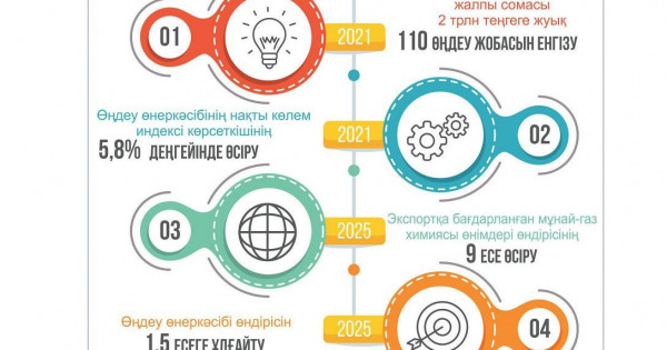 Memleket basshysy qańtar aıynda ótken Úkimettiń keńeıtilgen otyrysynda iske asyrylyp jatqan munaı-gaz hımııasy óndiristerin jedeldetý jóninde sharalar qabyldaý, sondaı-aq áleýetti ınvestorlar úshin tartymdy jaǵdaılar jasaý mindetin qoıdy. Osyǵan oraı Úkimet pen Investor arasynda memlekettik qoldaýdyń barlyq sharalaryn bir qujatta biriktirýge múmkindik beretin ınvestısııalyq kelisim ázirleý qajet. Atalǵan kelisim mynadaı nátıjelerge qol jetkizýge múmkindik beredi: Munaı-gaz hımııasy ónimderin óndirý kólemi 2020 jylmen salystyrǵanda 2025 jylǵa qaraı 5,5 esege artyp, 2 mln tonnadan astam ónimdi quraıdy. Málimdelgen jobalardy iske asyrý úshin tartylǵan qarajattyń jalpy kólemi shamamen 3,9 mlrd dollardy quraıtyn bolady. Qurylys kezeńinde 6 myńnan astam jumys orny, paıdalaný kezeńinde shamamen 2 myń jumys orny qurylmaq. Bul rette sarapshylardyń baǵalaýy boıynsha, munaı-gaz hımııasy salasynda 1 jumys orny ekonomıkanyń aralas salalarynda qosymsha 3 jumys ornyn qurady.