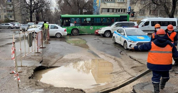 Eske salsaq, jaqynda Tóle bı-Muratbaev kósheleriniń qıylysynda «AGS-PLAST» JShS-niń ınjenerlik jumystardy sapasyz júrgizgendigi saldarynan jol qaq aırylǵan edi.
