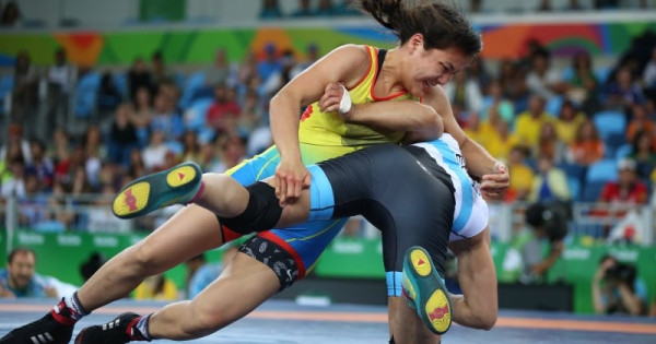 59 kılo salmaqtaǵy Dıana Qaıýmova úndistandyq Sarıta Sarıta jáne mońǵolııalyq Shoovdor Batarjavpen beldesedi.