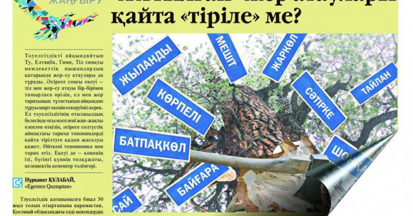 Halqymyzda «Jalǵyzdyń úni shyqpaıdy, jaıaýdyń shańy shyqpaıdy» degen ataly sóz bar, osy oraıda kóp bolyp oılasyp, el táýelsizdiginiń 30 jyldyq qurmetine, ıá bolmasa, uly aǵartýshy Ybyraı atamyzdyń 180 jyldyǵyn eskere otyryp, Qostanaı oblysyndaǵy 30 eldi mekenniń tarıhı ataýyn qaıta jańǵyrtý týraly usynys aıtqym keledi. Bedeldi ǵalymdar men oblys, respýblıkadaǵy quzyrly oryndar jumylyp osy ıgi bastamaǵa qoldaý bildiredi dep senemin.