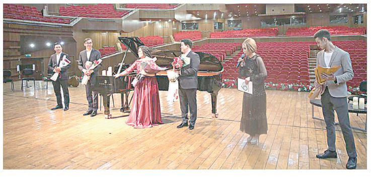FORTE-TRIO memlekettik trıosymen birge sahnada Qazaqstannyń eńbek sińirgen qaıratkerleri Aıgúl Nııazova (soprano) men Azamat Jyltyrkózov (barıton) óner kórsetti.