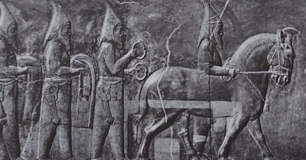 «Behýstın jazbalary» Qazaqstan tarıhy úshin asa mańyzdy ejelgi parsy derekteriniń biri de, biregeıi bolyp tabylady. Eńbekte bizge qajetti tusy tutqynǵa túsken, sońynda kele jatqan saq patshasynyń basyndaǵy shoshaq bórik jáne shoshaq bas kıim kıgen saq jaýyngerleri. Sonymen qatar barlyq qazbadan tabylǵan saq qorǵandaryndaǵy erlerdiń kıiminiń báriniń qasynan qarýlary, qanjarlary tabylǵan.