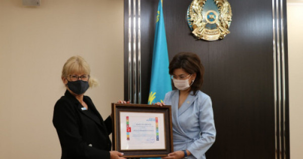 Is-shara barysynda Marııa Dosenko Aıda Balaevaǵa genderlik teńdikti ilgeriletý boıynsha belsendi jumysy úshin «BUU-áıelder» Qurmet gramotasyn tapsyrdy.
