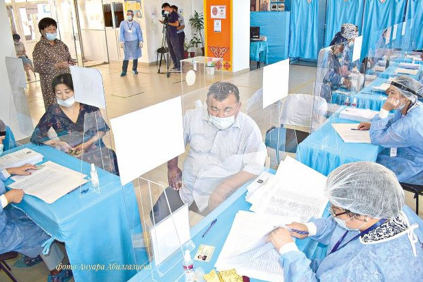 Aýyldaǵy saılaý ýchaskesinde saılaýshylardyń jasyryn daýys berýi úshin bes kabına ornatylypty. Al múmkindigi shekteýli jandarǵa arnalǵan taǵy bir kabına jabdyqtalǵan. Munda araqashyqtyqty saqtaý jónindegi nusqaýlyqtar ilingen. Saılaý ýchaskesiniń kireberisinde saılaýshylardyń dene qyzýy ólshendi. Sodan soń saılaýshylar Ashyq júıesindegi QR kod arqyly ótti. Saılaýshylar daýys bergen soń basqa esik arqyly syrtqa shyqty.