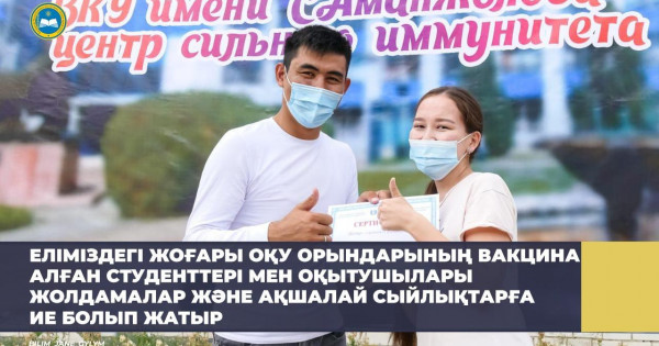 M. Áýezov atyndaǵy Ońtústik Qazaqstan ýnıversıtetiniń stýdentteri men oqytýshylary da qundy syılyqtar men joldamalarǵa ıe boldy. Jańa oqý jyly qarsańynda 10 stýdent bir kúndik avtotýrǵa jáne kıeli jerlerge saıahatqa barady, al 5 stýdent TOEFL emtıhanyn tegin tapsyrýǵa múmkindik alady. 1 shilde – 1 tamyz aralyǵynda vaksına alǵan ýnıversıtettiń professorlyq-oqytýshylyq quramyna Saryaǵash shıpajaıyna joldamalar beriledi. Olar úshin sondaı-aq aqshalaı syılyqtar da qarastyrylǵan.