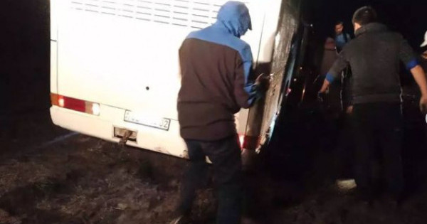 Shyǵys Qazaqstan oblysy Abaı aýdany Toqtamys aýylynan 20 shaqyrym jerde Qońyr áýlıe úńirine bara jatqan jolda avtobýs batbaqqa batyp qaldy. Jaýynnyń astynda qalǵan 40 jolaýshyǵa jedel jetken qutqarýshylar toby avtobýsty súırep shyǵaryp, der kezinde kómek kórsetken. Jolaýshylar óz baǵyttarymen aman-esen saparlaryn jalǵastyrdy. Zardap shekkender joq.