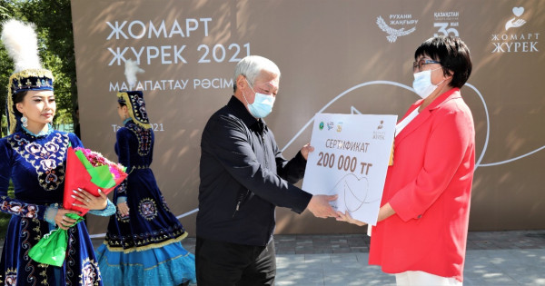 Dástúr boıynsha, Taraz qalasyndaǵy Qaırat Rysqulbekov atyndaǵy saıabaqta Jambyl oblysynyń ákimi Berdibek Saparbaevtyń qatysýymen «Jomart júrek» syılyǵynyń oblystyq kezeńdegi laýreattaryn marapattaý rásimi ótti. Saltanatty jıynda Berdibek Saparbaev qaıyrymdylyq sharalaryn uıymdastyrýmen aınalysyp kele jatqan azamattarǵa alǵys bildirdi. «Qaıyrymdylyq – bizdiń qasıetti qundylyǵymyz. Biz qashannan bir-birimizdi qoldap, kómek kórsetip, meıirimdilik tanytyp kelemiz. Sonaý asharshylyq, soǵys kezinde de ata-babalarymyz ultyna, tiline qaramaı kópke kómek kórsetip, qol ushyn bergeni belgili. Sol ıgi dástúr áli de jalǵasyn taýyp keledi. Elbasymyzdyń «Rýhanı jańǵyrý» baǵdarlamasynyń aıasynda qolǵa alynǵan «Jomart júrek» jobasy bizdiń óńirimizde de tabysty júzege asyp keledi. Qamqorlyqty qajet etetin otbasylarǵa bizdiń demeýshilerimiz, kásipkerlerimiz únemi qaıyrymdylyq tanytyp keledi. Budan bólek, oblysta «Jomart túlek» jobasyn júzege asyrýdamyz. Ondaǵy maqsat – tabysty túlekterdi óziniń mektebine, týǵan aýylynyń áleýmettik máselelerin sheshýge, órkendetýge tartý, sondaı-aq, olardyń ónegeli ómir jolyn keıingi urpaqqa úlgi retinde usyný. Sonymen qatar, halqymyzdy birlikke úndeıtin «Asarlatyp úı salý jobasyn» qolǵa alǵan bolatynbyz. Ejelden kele jatqan ıgi dástúr – asar ádisin qaıta jańǵyrtqan bul bastama aıasynda kásipkerler men qaıyrymdy jandardyń atsalysyp, kóptegen muqtaj otbasylarǵa úı salyp berýde. Biz birligimiz ben uıymshylydyǵymyzdyń, tabandylyǵymyzdyń arqasynda barlyq qıynshylyqty eńsere alamyz», dedi oblys ákimi. Budan keıin Berdibek Saparbaev oblystyq isker áıelder qaýymdastyǵy qoǵamdyq birlestiginiń tóraıymy Merýert Leshtaevany «Jyldyń úzdik uıymy» atalymymen marapattady. Atalǵan qoǵamdyq birlestikpen Baızaq aýdanyndaǵy jarylystan zardap shekken turǵyndarǵa kómek kórsetý úshin 500 myń teńgeden astam qarajat jınalyp, oǵan Qaınar aýylyndaǵy 19 otbasyna azyq-túlik satyp alynǵan. Al, balalardy qorǵaý merekesine qalanyń qoǵamdyq birlestikterinen 110 balaǵa jalpy kólemi 1,2 mıllıon teńgege syılyqtar alyp bergen. Onyń ishinde múmkindigi shekteýli balalar men olardy tárbıelep otyrǵan ata-analar da qamtylǵan.