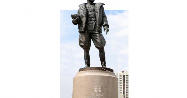 Jurt aıaǵy basyla Tákeńdi kórýge bardym. Shynymdy aıtsam, eskertkish birden unady. Jan-jaǵyn záýlim úıler qorshaǵan, kúre jolǵa taıaý alańqaıda, tóńkerilgen kók aspannyń astynda, sılındr tárizdi bıik tuǵyrda tulǵasy kúnge shaǵylysyp, soǵys kezindegi áskerı ushqysh keıpindegi jas jigit aıaǵyn alshań basyp, bolashaqqa senimmen qaraıdy. Onyń dembelshe, shıyrshyq atqan tulǵasyna galıfe shalbary da, etigi men óńiri sál ashylǵan kúrteshesi quıyp qoıǵandaı jarasyp, qajet bolsa osy qazir ushaǵyn urshyqsha ıirip, kók álemine jolbarystaı atylatyn bula kúshi atoılap turǵandaı. Músinshi Tákeńniń symbatty, qaıratty, jastyqqa tán tentek, jaýjúrek beınesin dál beınelepti. Qazaqtyń ulan-baıtaq dalasyn, mine, osyndaı batyr oǵlandary qorǵamasa búgin onyń táýelsiz, azat shaǵyn kórer me edik?!