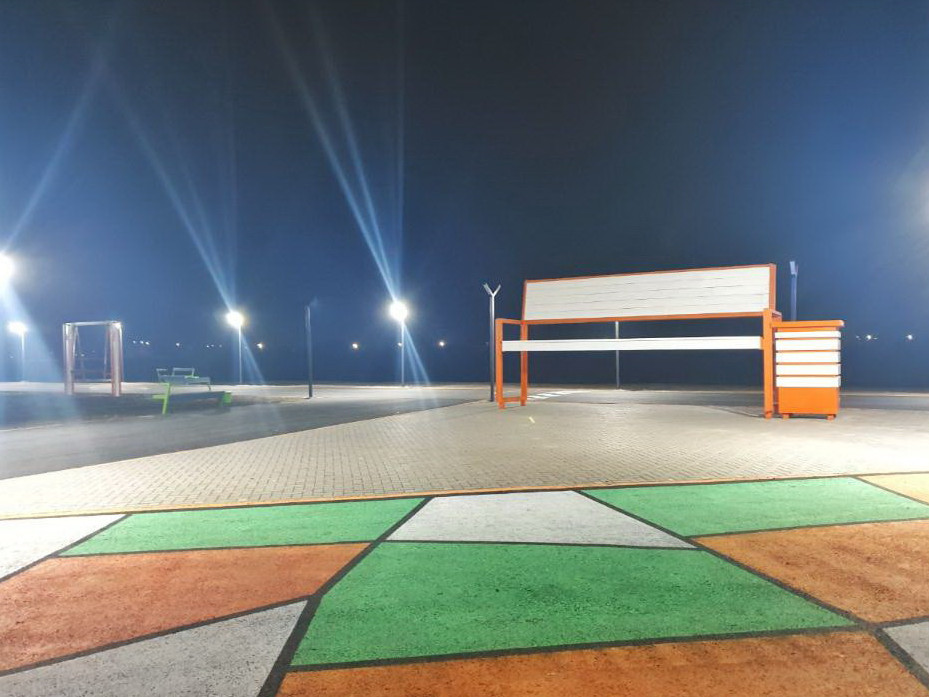 Búginde saıabaqtaǵy jastarǵa arnalǵan alańqaıdyń mańaıy kógaldandyrylyp, aınala aǵashtar egilgen.
