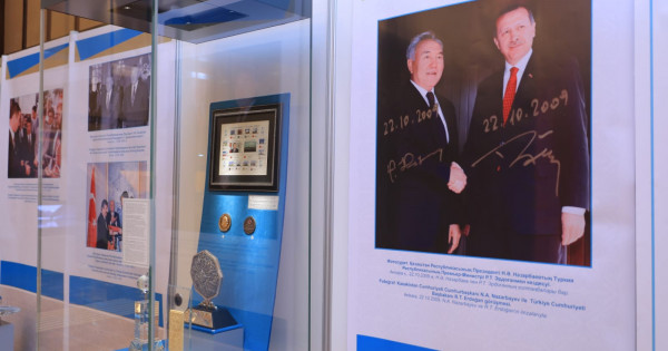 «Qazaqstan joly. Túrki birligi» kórmesinde N.Á. Nazarbaevtyń basty saıası bastamalaryna basymdyq berilgen. Mazmuny baı, maǵynasy tereń bastamalar álemdik qaýymdastyq tarapynan oń baǵa alyp, búginde dúnıe júzi boıynsha aıtarlyqtaı nátıje berdi.