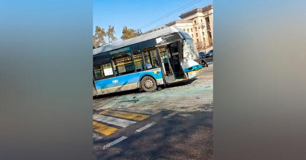 «YUONG MAN» markaly trolleıbýspen soqtyǵysýǵa jol berdi. Jol apaty saldarynan trolleıbýstaǵy úsh jolaýshy, avtobýstaǵy eki jolaýshy jáne eki júrgizýshi de zardap shekti. 1966 jyly týǵan trolleıbýs júrgizýshisi men 1986 jyly týǵan avtobýs júrgizýshisi dene jaraqattarymen aýrýhanalarǵa jetkizildi. Materıal Almaly aýdandyq polısııa basqarmasynyń óndirisinde», dedi Almaty qalasy Polısııa departamenti Anyqtaý basqarmasynyń bastyǵy Oljas Sháripov.