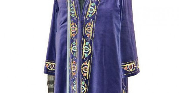 Qundy jádiger bas mýzeıge burynǵy Prezıdenttik Mádenıet ortalyǵynan tapsyrylǵan. Shapannyń uzyndyǵy – 128 sm, jeńiniń uzyndyǵy – 66 sm, eni – 30 sm. Ol kúlgin tústi barqyt matadan tigilgen, tik jaǵaly bolyp keledi. Shapannyń aldy men etegi jáne jeńiniń eki jaǵyndaǵy jıekterine altyn jáne aq, jasyl, qyzyl tústi jibek jiptermen oıý júrgizilgen. Etek jaǵy keń tigilip, eki janyna 45 sm kólemde qıyq salynǵan. Al taqııa kúlgin tústi barqyt matadan jasalǵan. Taqııa da altyn jáne aq, jasyl, qyzyl tústi jibek jiptermen oıýlanǵan. Tóbesine úki taǵylyp, mańdaı tusyna aı pishindi túıreýish qadap qoıylǵan.