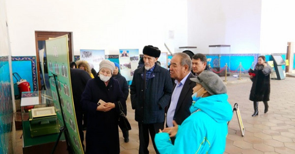 Sonymen qatar Elbasy N.Á.Nazarbaevtyń qazaq, orys, aǵylshyn, túrik tilderinde jaryq kórgen «Ǵasyrlar toǵysynda», «Tarıh tolqynynda», «Syndarly on jyl», «Qazaqstan joly», «Kazahstanskıı pýt», «Beıbitshilik kindigi», «Týǵan elim – tiregim», «Evrazııskıı Soıýz: ıdeı, praktıka perspektıvy», «Kutup Yildizi», «Nursultan Nazarbayev» atty týyndylary men 1999 jyly qoryq-mýzeı qoryna tabystaǵan Quran Kárim kitaby, 2005 jyly Túrkistanǵa resmı saparmen kelgende kıgen shapany kópshilik nazaryna usynyldy.