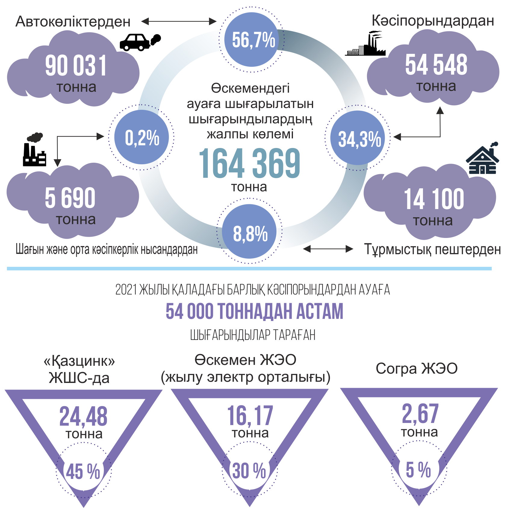Zaýyttardan zııandy shyǵaryndylardyń aýada tutasyp turǵanyna baılanysty qolaısyz meteorologııalyq jaǵdaıdyń jarııalanyp kele jatqanyna jarty aıdan asty. Turǵyndar da narazylyq bildirip otyr. Alaıda sharasyz. Ekologııa departamenti bastyǵynyń málimetinshe, О́skemendegi aýaǵa shyǵarylatyn shyǵaryndylardyń jalpy kólemi 164 369 tonnany quraıdy. Onyń ishinde óndiris oshaqtarynyń, kólikterdi, jeke sektordyń, kásipkerlik nysandardyń shyǵaryndylary bar.