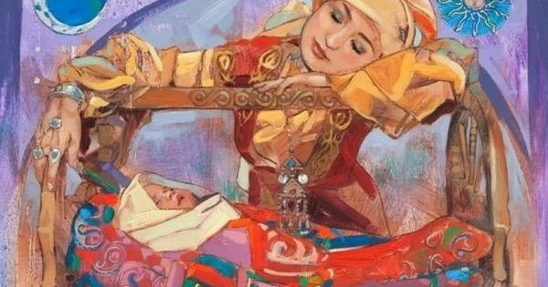 dydan sony baıqaýǵa bolady. Aı men kúnniń arasynda sábıin áldılegen ana bar peıilin besiktegi balasyna arnap, dúnıedegi eń baqytty jannyń obrazyn somdap tur.