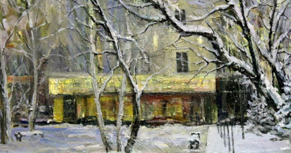 Mine, munyń bári sýretshi tústerdi úılestirip jetkizgen qystyń úırenshikti belgileri. Tynyq, kómeski, reńk jaǵynan bir-birine jaqyn túster tabıǵattyń kúıi men sol jerdiń atmosferasyn jetkizip tur. Sýretshi áli de qarańǵylyq túspegenin aıtyp, ymyrt uıalar shaqtyń keskinin syzǵan. Qysqy astanany saǵynǵan janǵa ańsaryn basar ádemi sýret ártúrli oıǵa jeteleıdi.