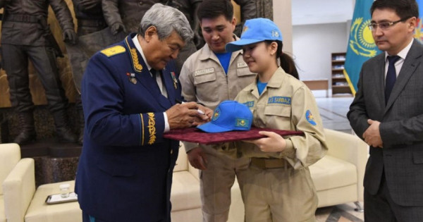 Jas patrıottar Toqtar Áýbákirovke jyly lebizderin bildirip, «Jas sarbaz» qozǵalysynyń sımvoly órnektelgen syılyqtar tabys etti.