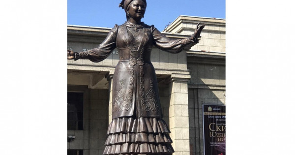 Qazaq ónerine qaıtalanbas iz qaldyrǵan tarıhı tulǵanyń eskertkishi kompozısııalyq sheshiminiń shymyrlyǵymen kóz tartady. Qola jáne granıtten jasalǵan eskertkishtiń bıiktigi – 4,8 metr. Avtorlary – D.Aǵzamov, Ý.Aqjoltaı, A.Jamhan, A.Qabyl. Úlken shyǵarmashylyq órleýdiń izi baıqalatyn talantty músinshilerdiń týyndysynda kúlimdegen júzine búrmeli kóılegi men oıýly beshpenti, úlpildegen úkili taqııasy jarasqan kúmis kómeı ánshi dál osy sát sahnada «Ah, Samara gorodok» ánin syzylta salyp turǵandaı áser qaldyrady. Tastuǵyrdyń ústinen tutas bir dáýirdiń ulttyq beınesi tónip turǵandaı. Sahnany serik etken sanaly ǵumyrynda qazaqtyń ulttyq kıimi men sán-saltanatyn nasıhattap ótken ultjandy ánshiniń obrazynan kúlli halqymyzdyń bolmysy men ómir saltynyń ańǵarylyp turýy – bıik sheberliktiń jemisi. Ásem Almatynyń árin kirgizgen ánshi músini jıyrmadan astam jobanyń ishinen úzdik dep tanylyp, ashyq baıqaý nátıjesinde tańdalyp alynǵan.