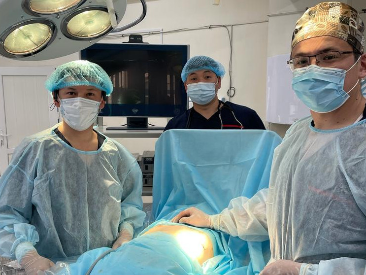 Torakaldy hırýrgter keńirdek stenozy dıagnozy qoıylǵan 56 jastaǵy pasıentke osyndaı operasııa jasady. Ol bıylǵy aqpan aıynda kovıd juqtyryp, pnevmonııanyń aýyr túrimen aýyrǵan eken.