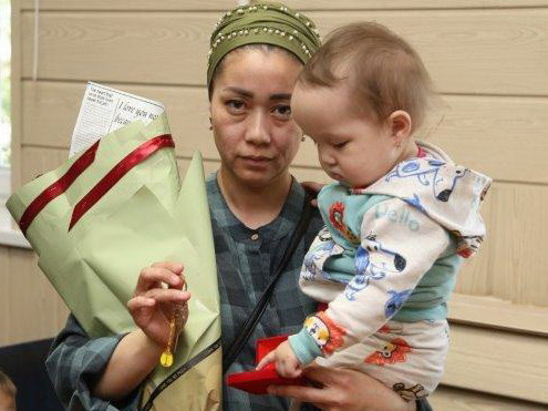 Munaıshylar kópbalaly otbasyǵa syıǵa berilgen páter ornalasqan úıdiń dálizine jóndeý júrgizdi. Al qonys toı ıesine kilem tartý etti.