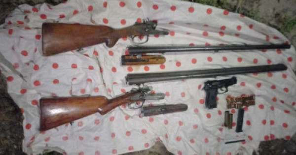 Tabylǵan qarýlar arasynda oqjatary bar Kalashnıkov avtomaty, TOZ-BM eki uńǵyly ańshylyq myltyǵy, EKOL Special 99 travmatıkalyq tapanshasy, Makarovtyń tapanshasynyń oqjatary, GSZ eki granata, EShÝ-200 eki elektrshokeri, shtyk-pyshaq, 9 mm kalıbrli 40 patron, bos kalıbri 16 mm gılzalar tabyldy.