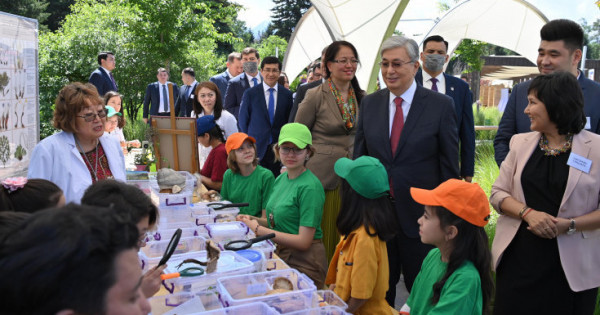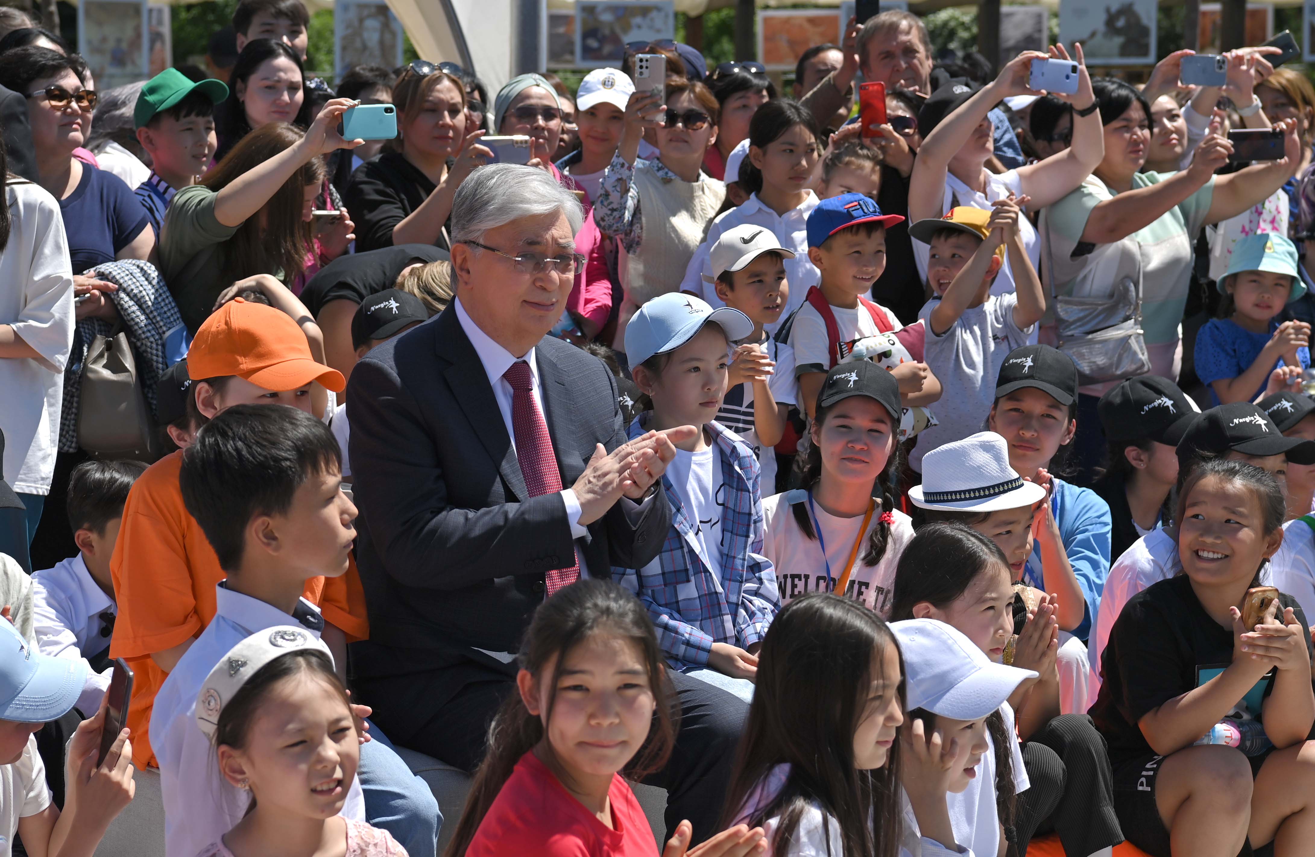 Prezıdent árbir alańqaıdaǵy jeńimpazdardyń ónerin tamashalap, olardyń jetistikterine rızashylylyǵyn bildirdi. Memleket basshysy jasóspirimdermen áńgimelesý barysynda olardy merekemen quttyqtap, balalar el bolashaǵy ekenin aıtty.