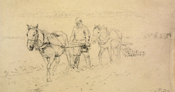 Sýretshi estelikterinde «L.N.Tolstoı egistikte» kartınasy Tolstoıdyń óz erkimen jesir áıeldiń eginin jyrtqan kúni salynǵanyn jazady. Al 1901 jyly Repın Tolstoıdyń jalańaıaq turǵan portretin salady. Alaıda, jalańaıaq júrgendi unatatyn jazýshy sýretshiniń bul portretin jaqtyrmaı qaldy. Tolstoı: «Repın jalańaıaq júrgenimdi eshqashan kórmegen sııaqty edi. Endi meni ish kıimsiz salý ǵana qaldy», dep keketedi.