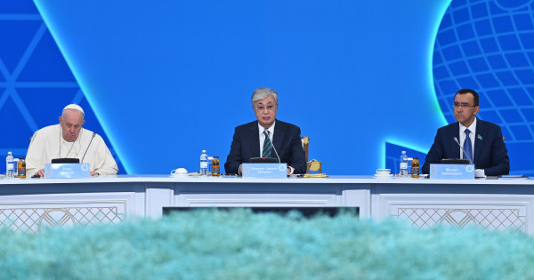– Qonaqjaı Qazaq jerine qosh keldińizder! Álemdegi eń bedeldi rýhanı kóshbasshylardyń basyn qosyp, dıalog qurý – biz úshin zor mártebe. Qazaqstanǵa alǵash ret memlekettik saparmen kelgen Vatıkannyń jáne Katolık shirkeýiniń basshysy Rım Papasy Fransıskige iltıpatymdy bildiremin. Siz dinder jáne halyqtar arasyndaǵy ózara túsinistikti nyǵaıtýǵa zor úles qostyńyz.