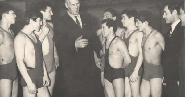 Fotony aınaldyryp qarap edim, ekinshi betinde «V.G.Iаrkov besedýet s bors. Zoovetınstıtýt. 1971 g» degen jazý bar eken. Demek bul foto 1971 jyly Semeı qalasynda Mal dárigerlik ınstıtýynyń kúres zalynda túsirildi degen sóz. О́ıtkeni, osy jyldary Rom Hasanuly atalǵan ınstıtýtta dene shynyqtyrýdan sabaq berýmen qatar, grek-rım kúresi boıynsha jattyqtyrýshy bolyp jumys istep júrgen kez. Rom aǵamyz 1936 jyly Borodýlıha aýdanynyń Aýyl stansııasynda dúnıege kelgen eken. Qazir Abaı oblysynyń ortalyǵy Semeı qalasynda aman-esen turyp jatyr.